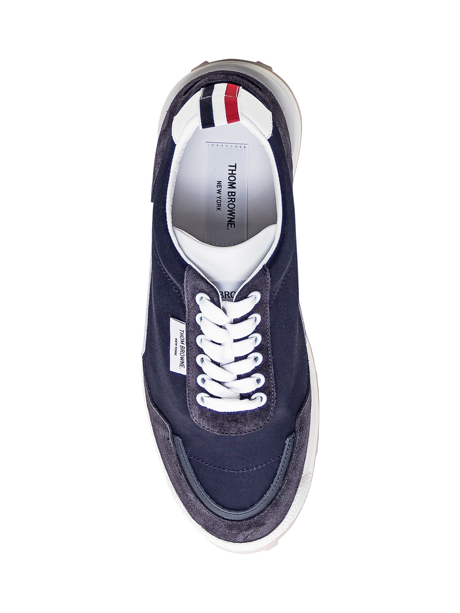 Sneaker blu con punta tonda. Inserti in pelle scamosciata. Chiusura con lacci. Patch Logo sulla linguetta e sul lato.