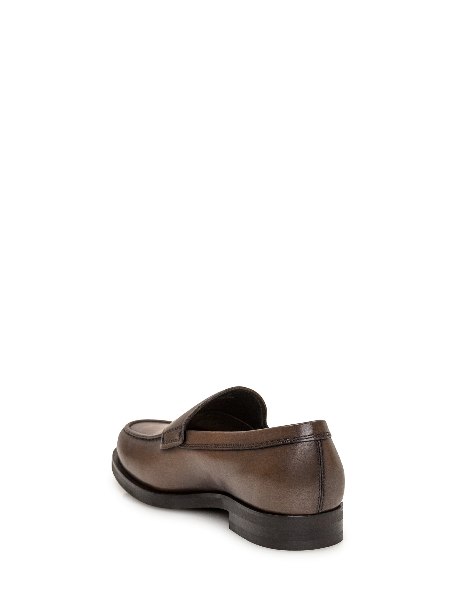 Mocassino marrone in pelle. Mascherina sul davanti. Logo impresso sul davanti.