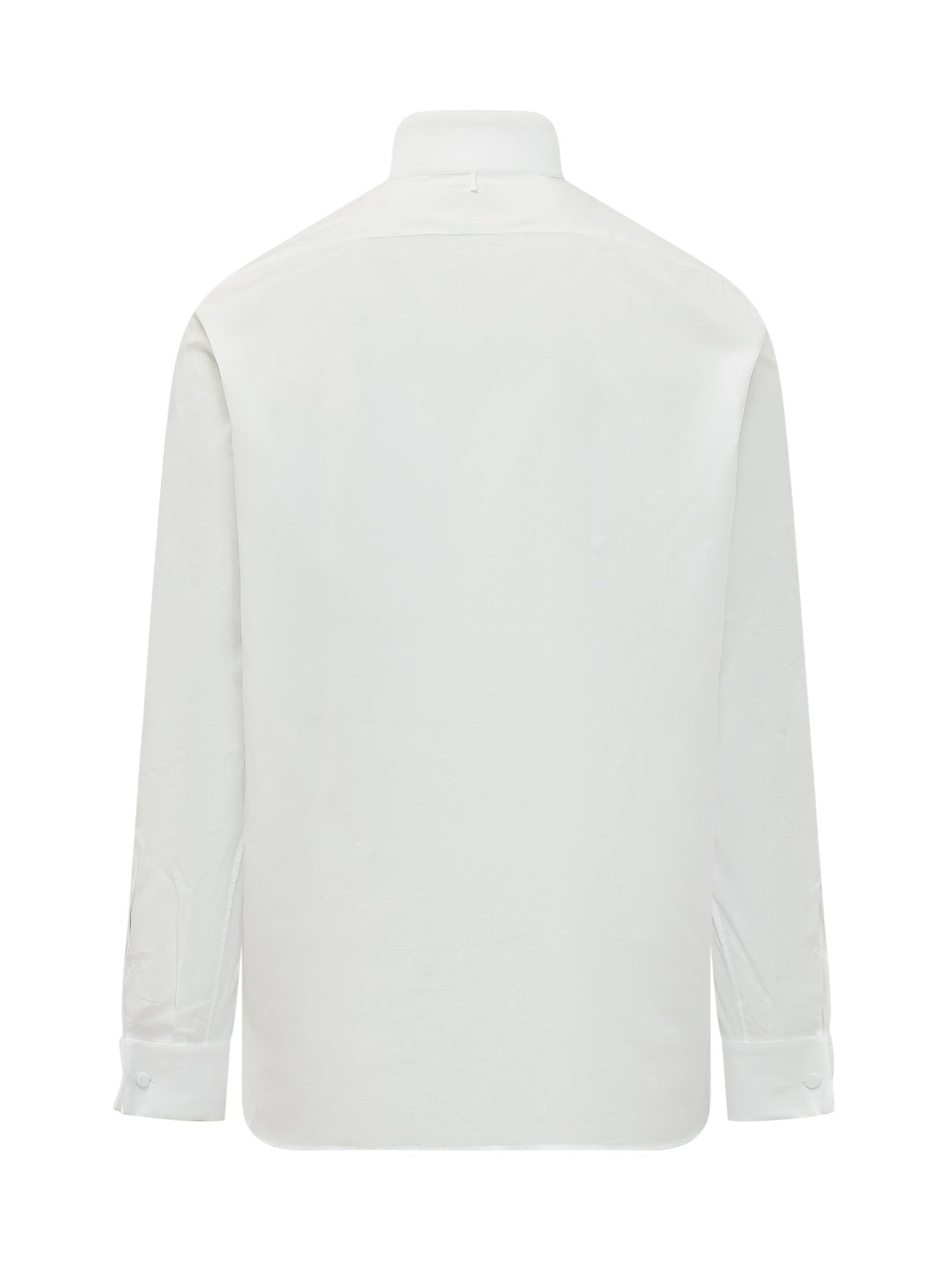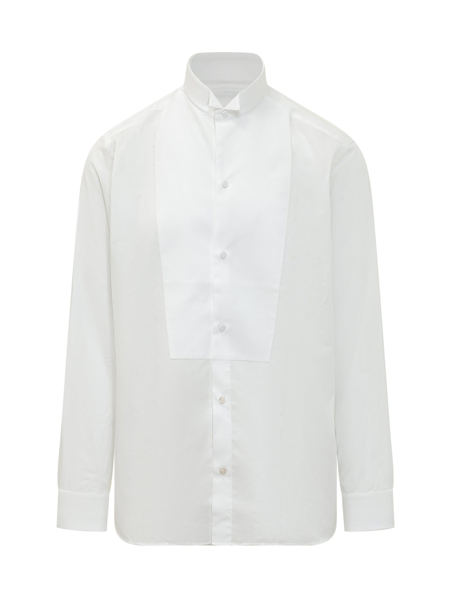 Camicia Classic Fit con collo coreano e chiusura frontale con bottoni coperti. Maniche lunghe con polsini e pettorina strutturata sul davanti. Linea dritta dal taglio formale.