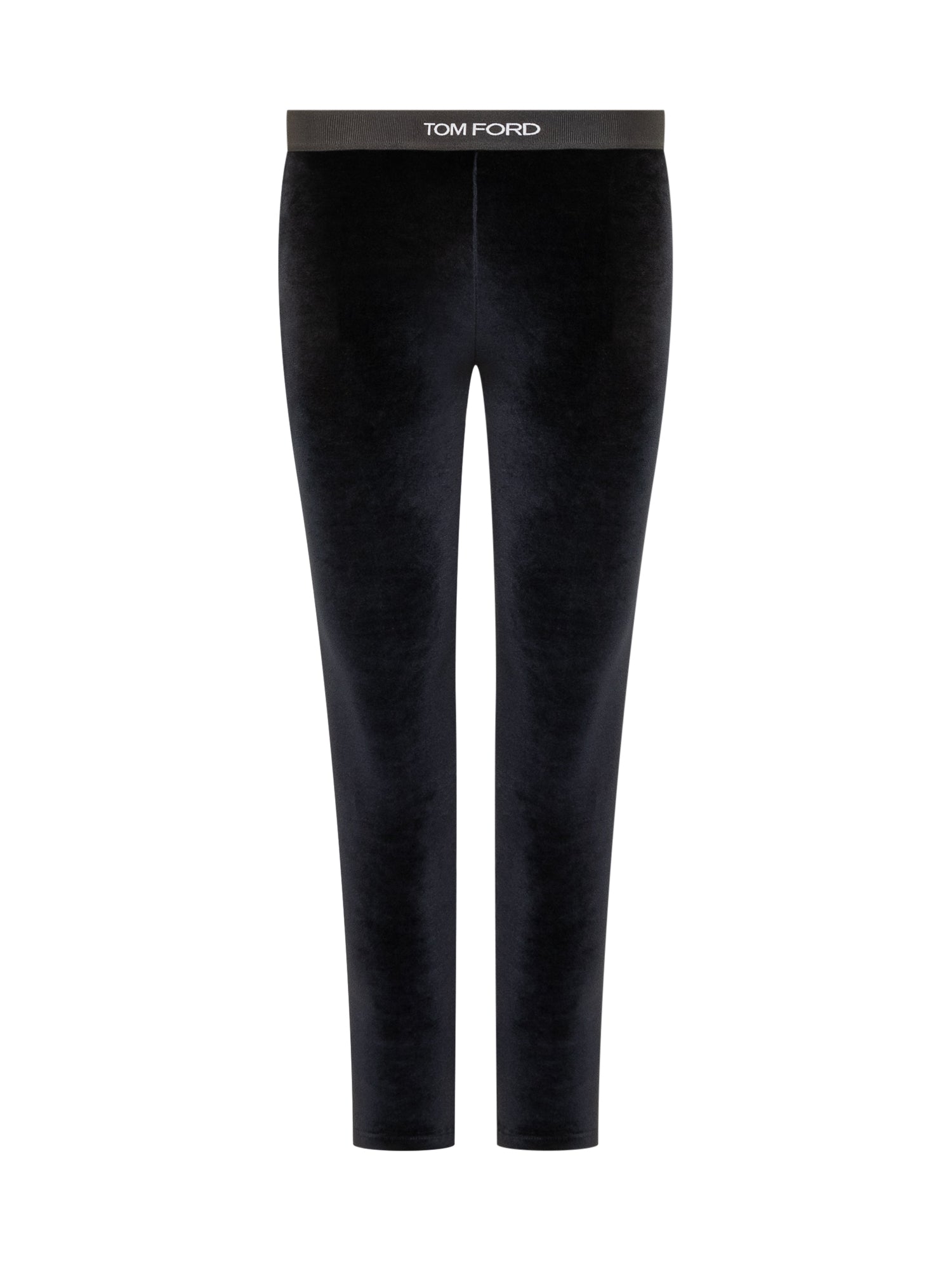 Leggings stretch Tom Ford in velluto blu notte, con fascia elastica in vita logata.
