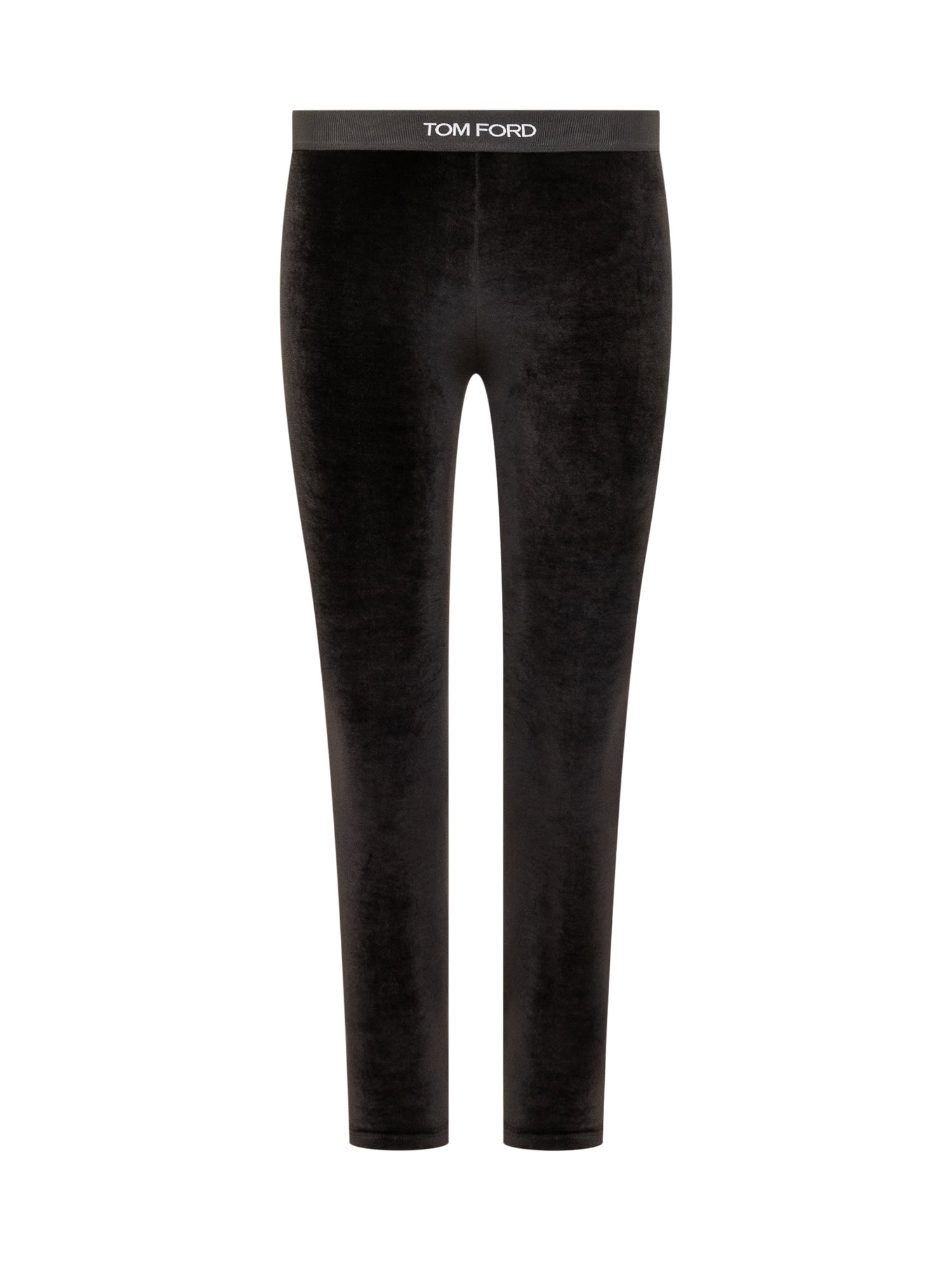 Leggings stretch Tom Ford in velluto nero, con vita elasticizzata logata.