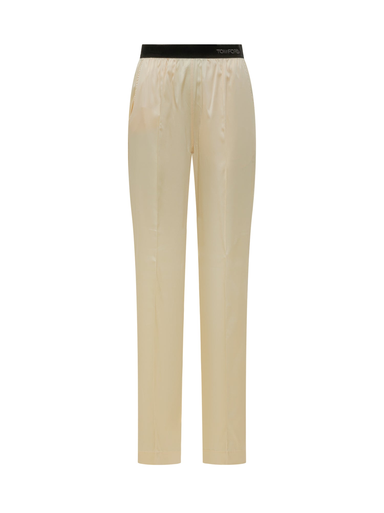 antaloni dalla linea fluida con vestibilità rilassata e gamba dritta. Realizzati in raso di seta dall aspetto lucido e morbido al tatto. Vita elasticizzata senza chiusura, con costruzione essenziale e fondo dritto.