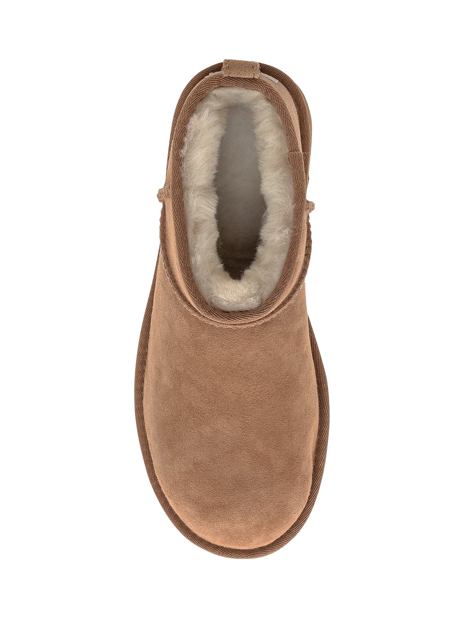 Stivale basso beige in pelle scamosciata. Slip-on. Fodera in montone. Patch logo sul tallone.
