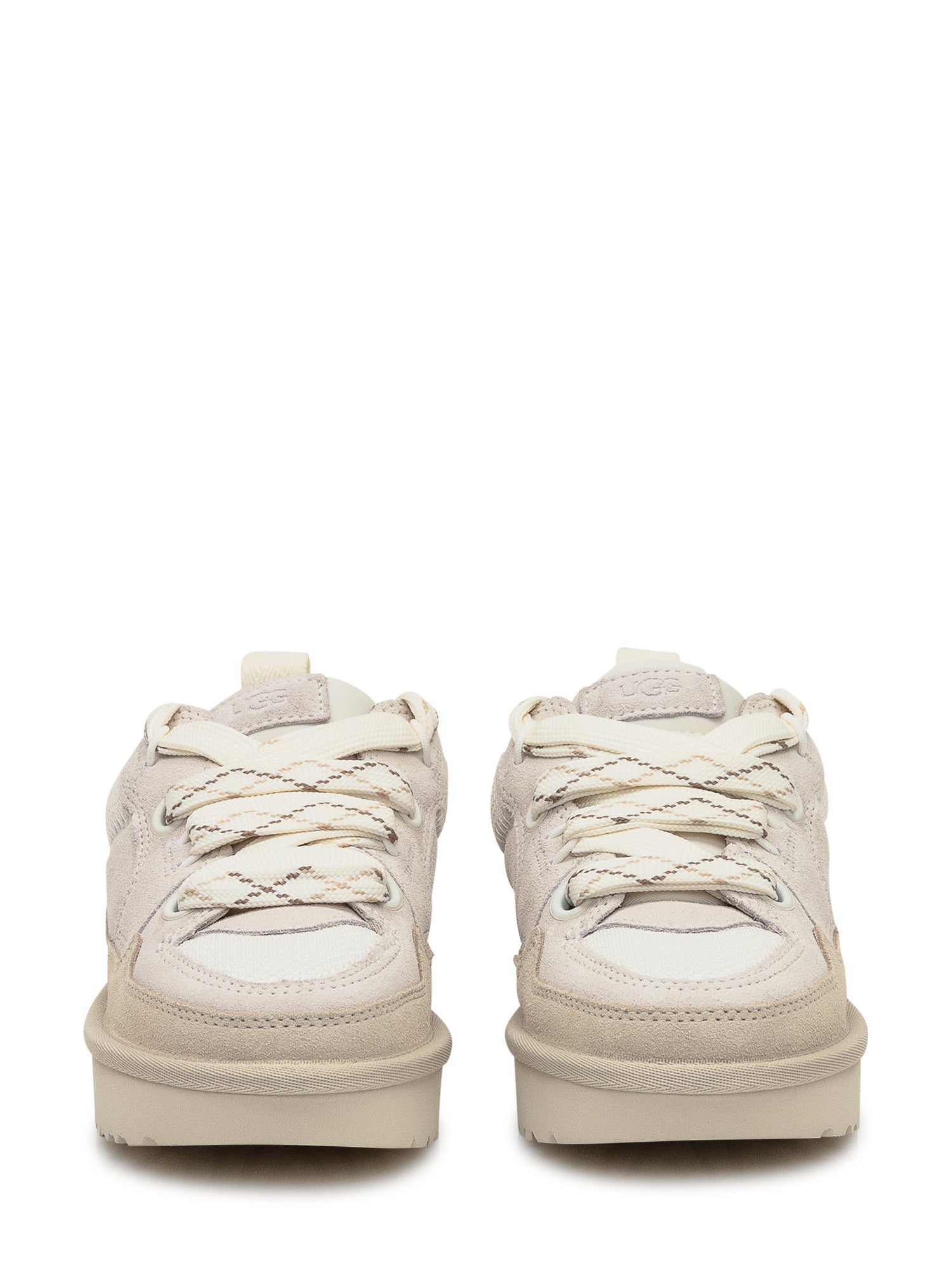 Sneakers UGG in suede e mesh color crema con lacci trekking e suola in gomma leggera.