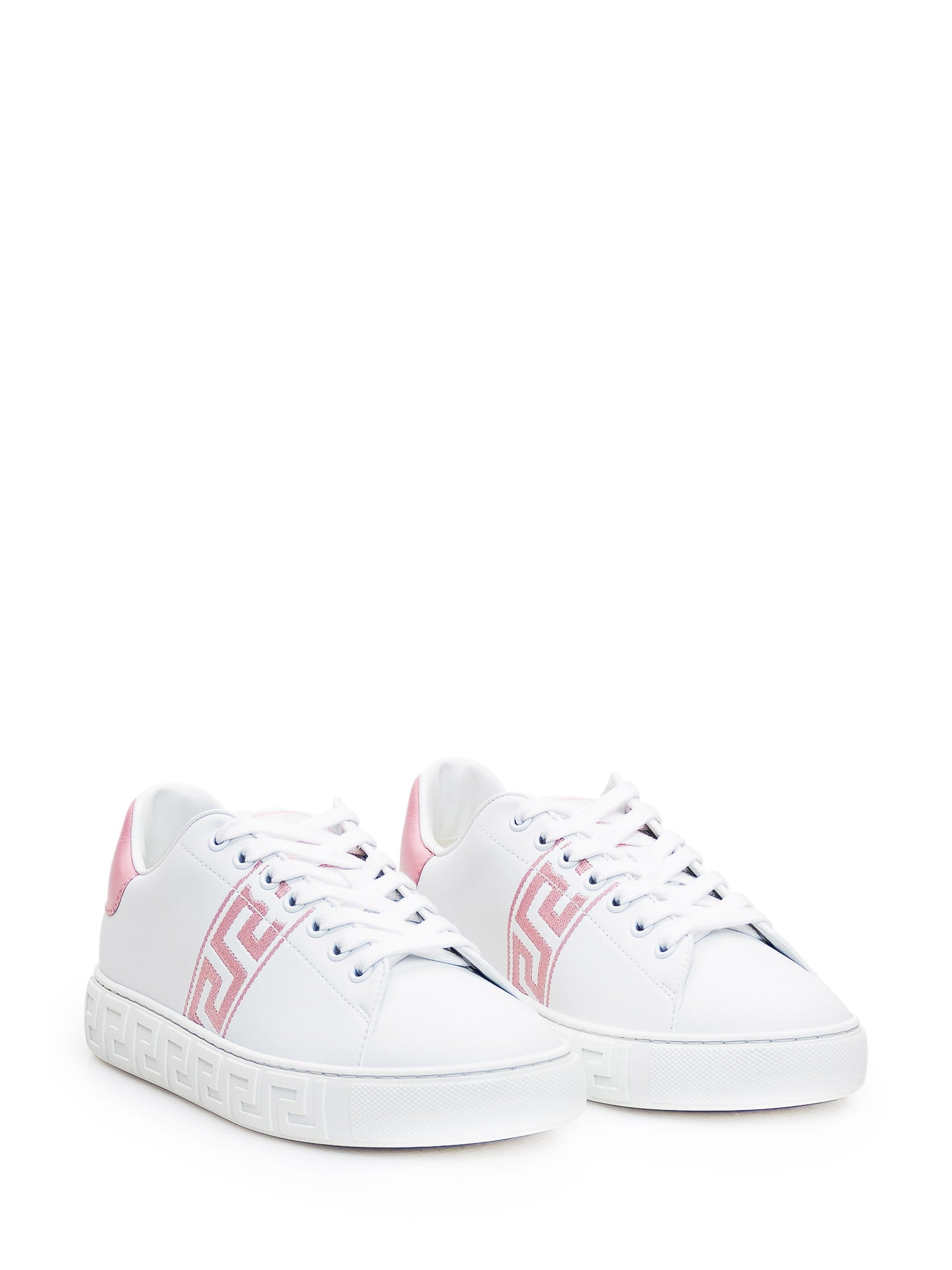 Sneaker bianca. Motivo Greca. Decorazioni con cristalli. Modello basso. Con lacci. Punta arrotondata. Logo applicato sulla linguetta. Logo sul tallone.