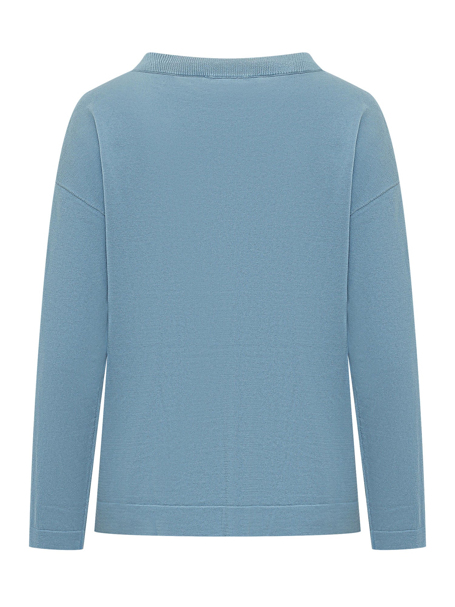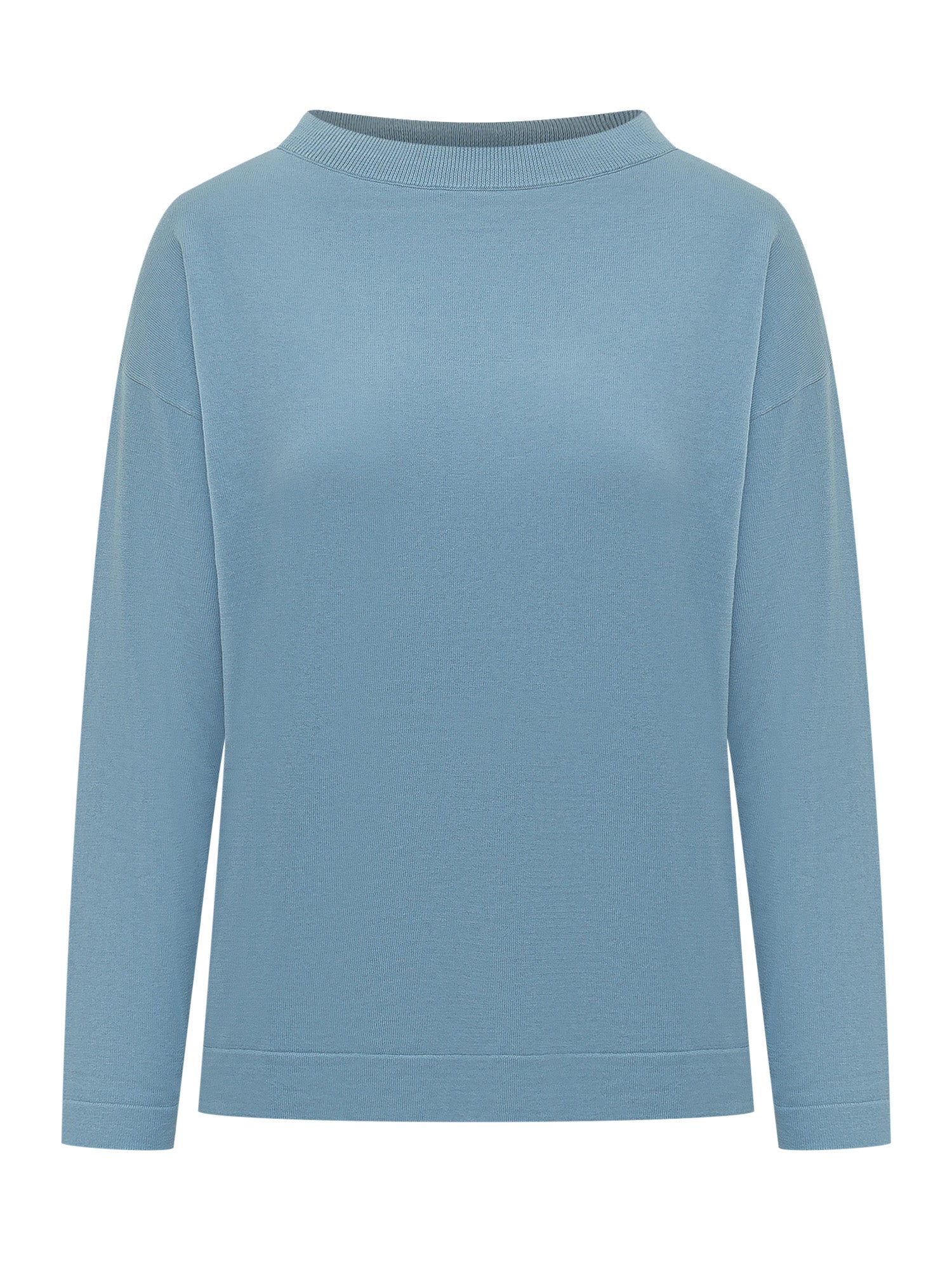Maglia girocollo a manica lunga, spalla scesa e vestibilita morbida, finiture a costine su collo polsini e fondo.