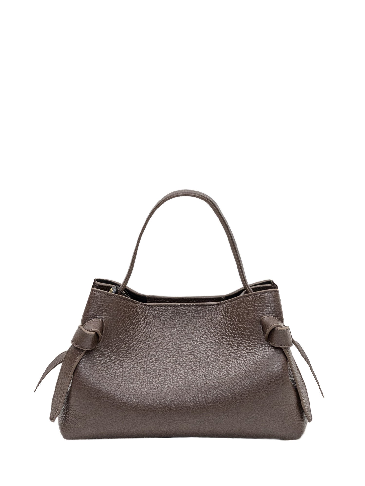 Borsa a mano dal design essenziale in pelle martellata, impreziosita da dettagli annodati sui lati.