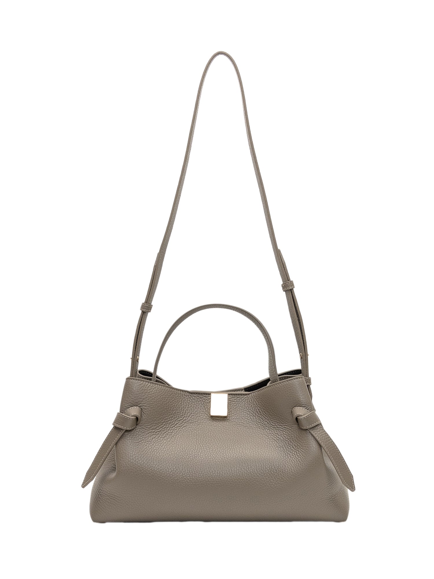 Borsa a mano dal design essenziale in pelle martellata, impreziosita da dettagli annodati sui lati.