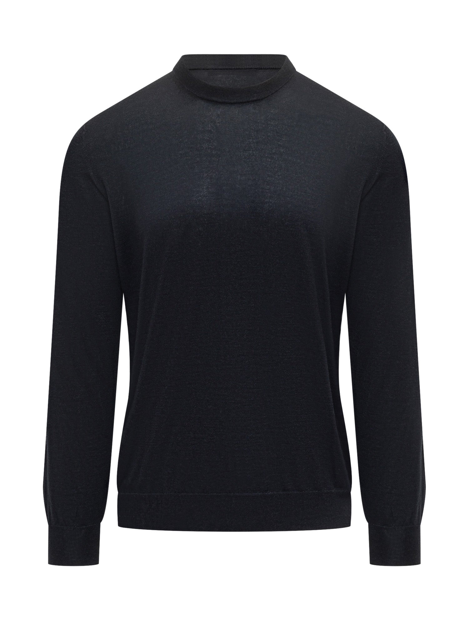 Maglia girocollo a maniche lunghe con design lineare e bordi rifiniti. Collo, poini e fondo a costine, vestibilità regolare ideale per un look sobrio e versatile.