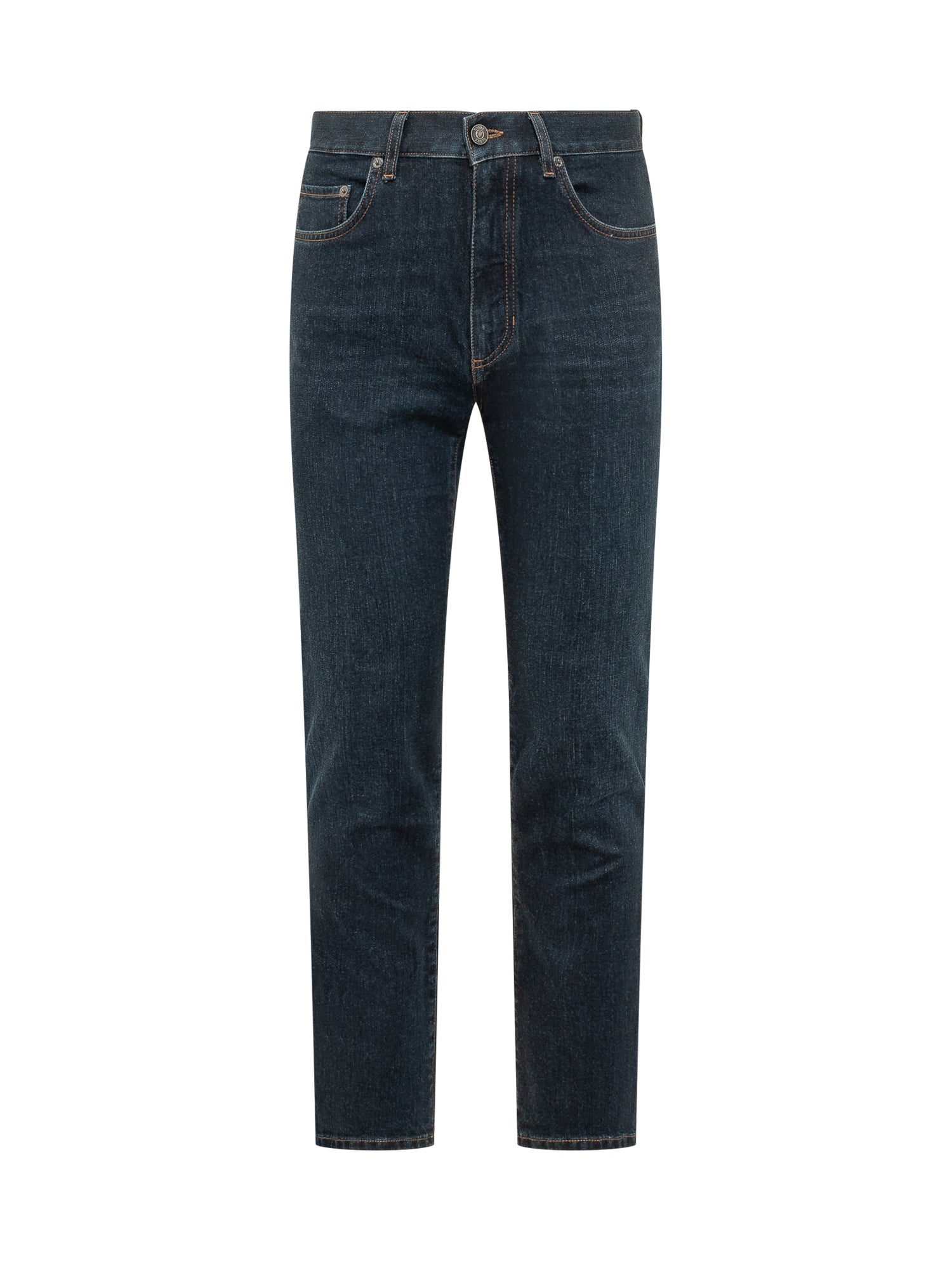 Jeans a cinque tasche con vestibilità regolare, passanti per cintura e chiusura con bottone e zip.