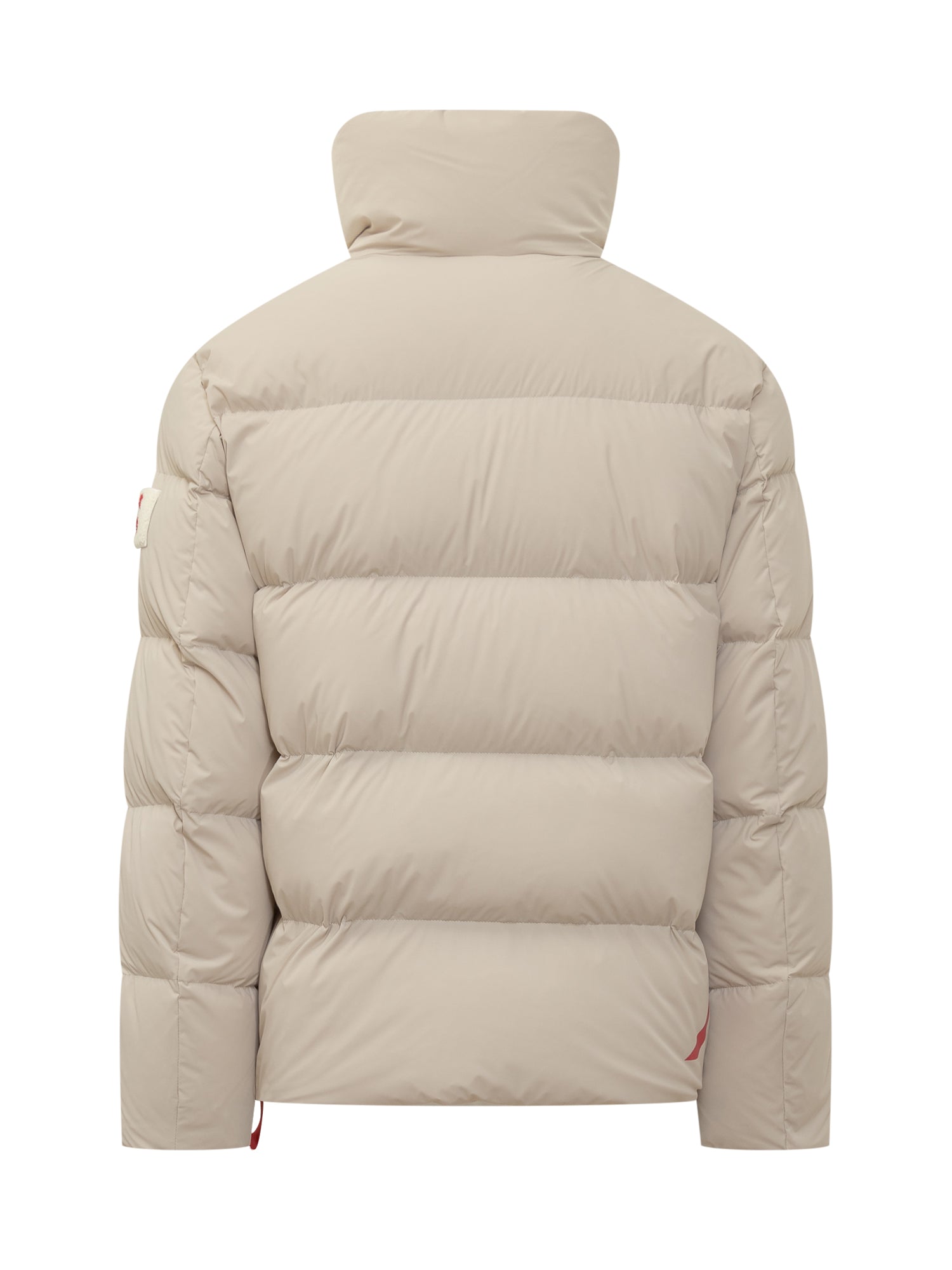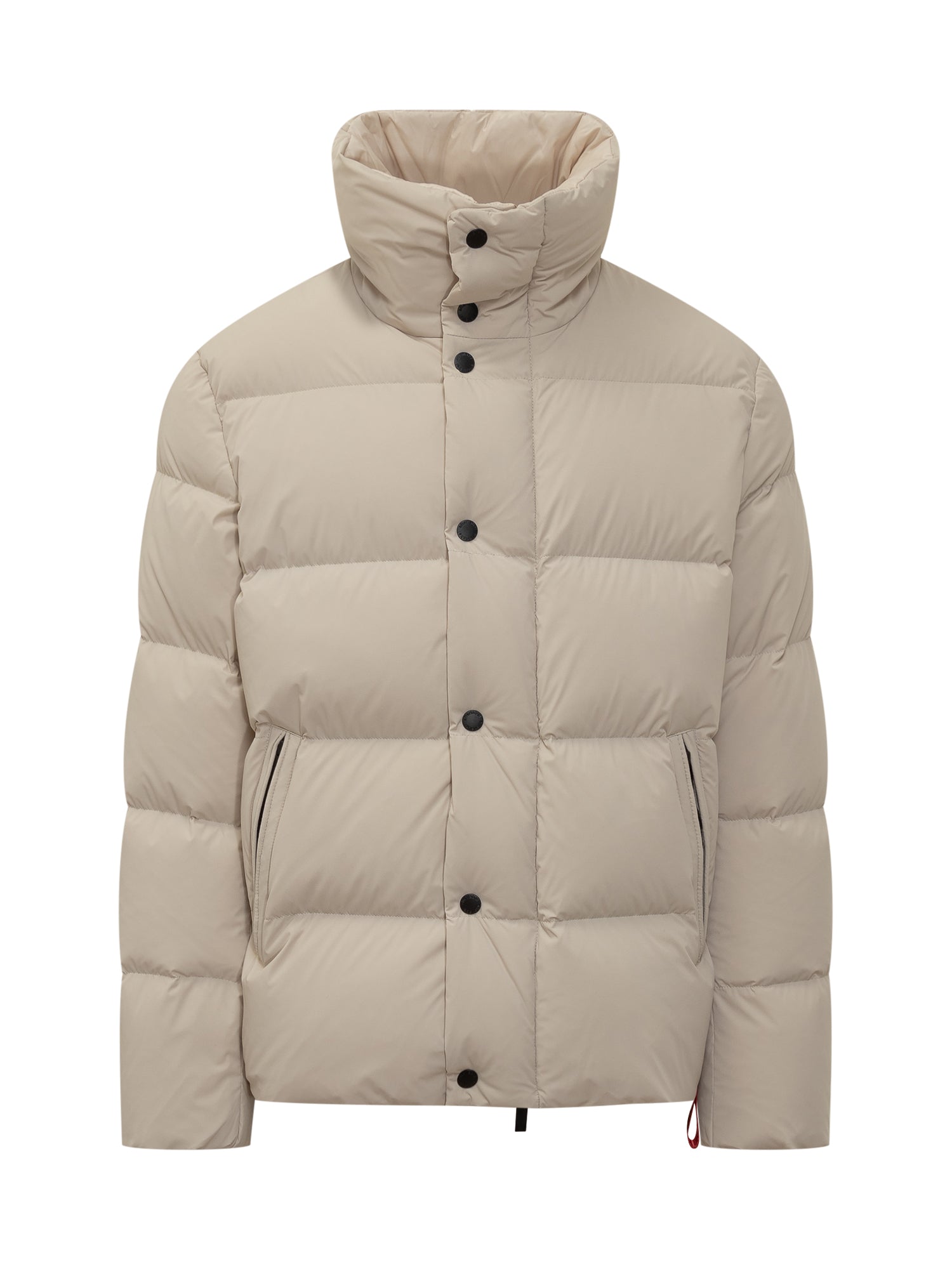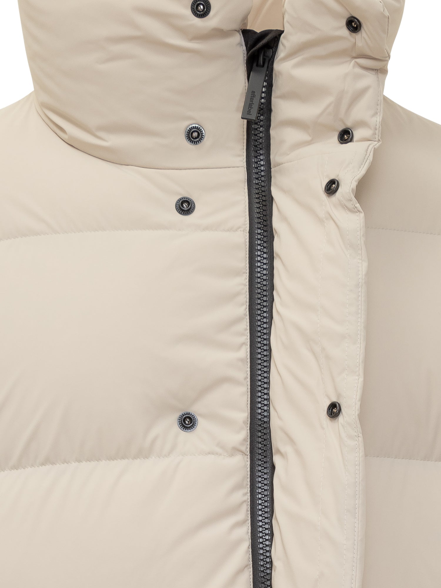 After Label beige nylon down jacket with warm padding, snap button closure and zip side pockets.