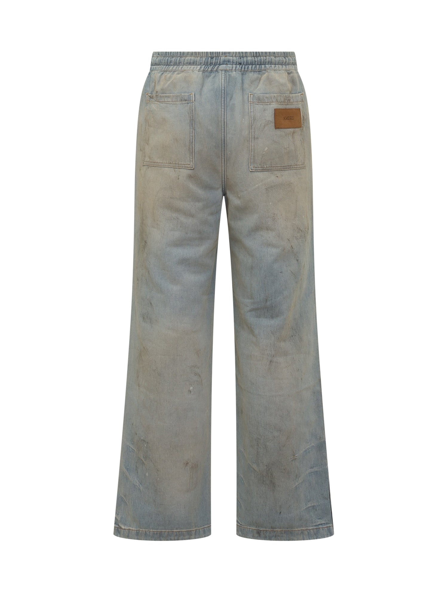 Relaxed baggy fit jeans with wide leg and elasticated waistband with drawstring. Worn-effect finish for a bold, contemporary look. High comfort and urban design.