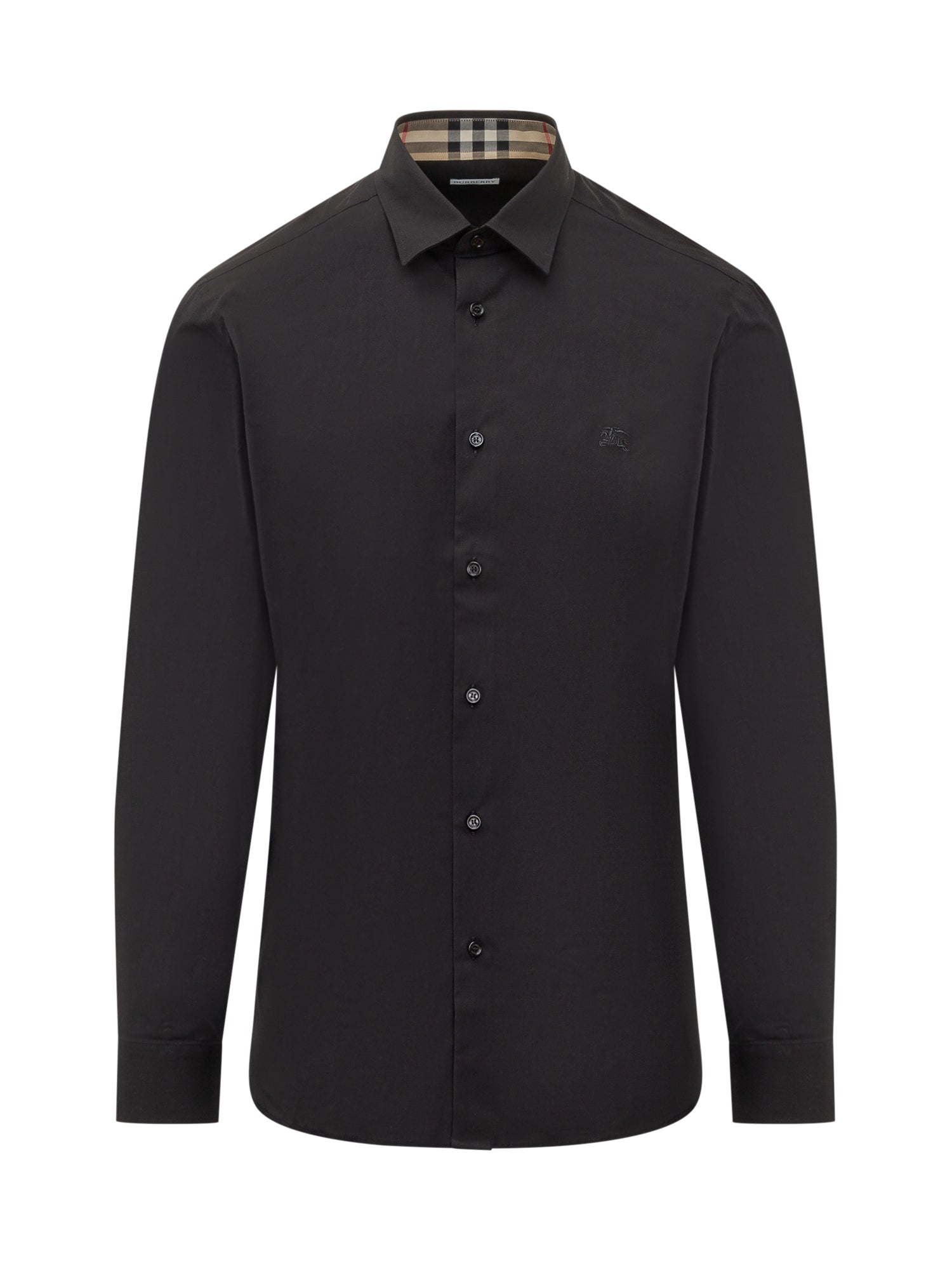 Long sleeve shirt with a clean, timeless silhouette. Enhanced by a refined inner check detail on the collar and a subtle embroidered motif on the chest.