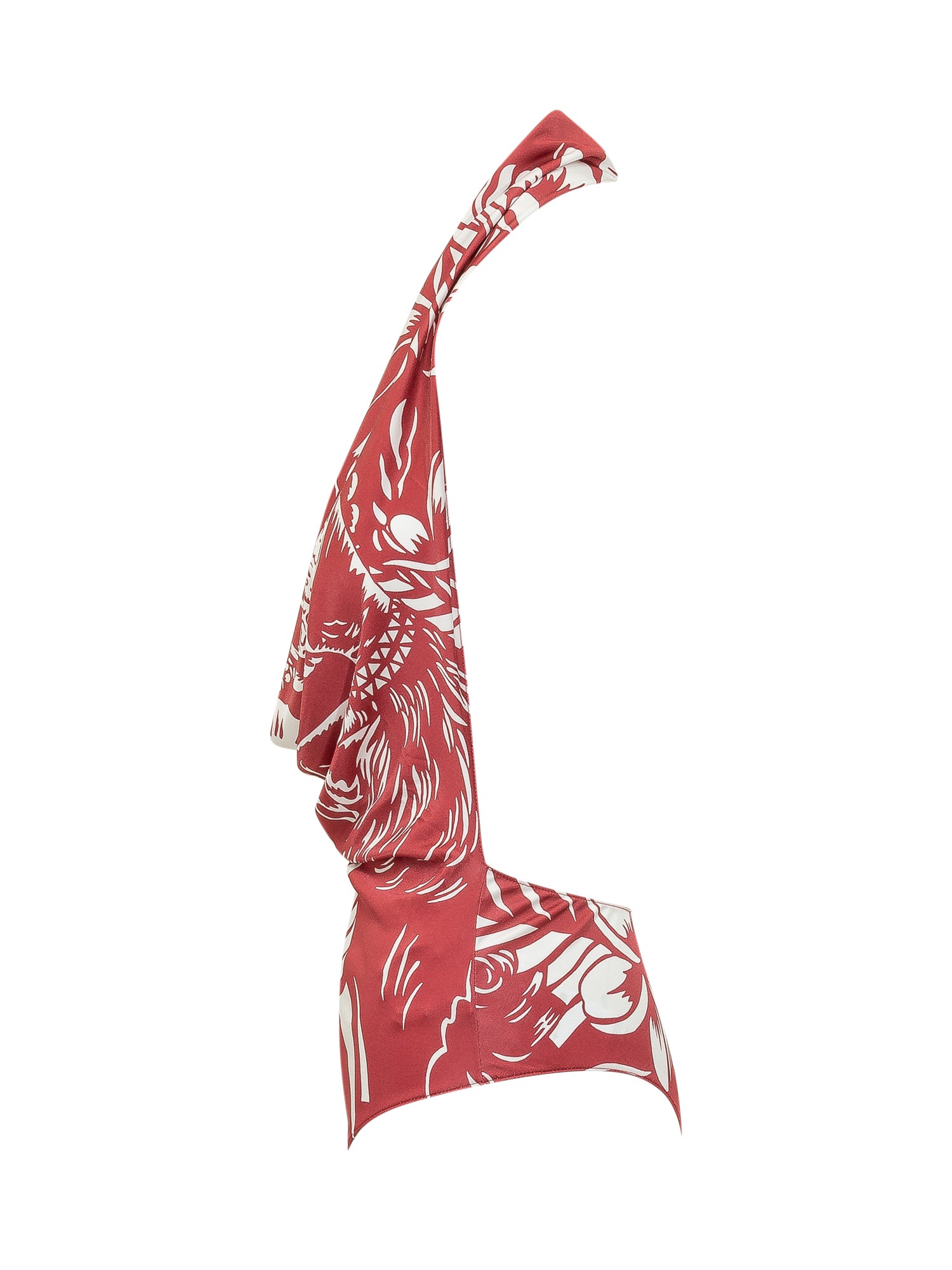 Halter neck bodysuit with fitted line, featuring all over floral print and draped neckline on the front. Sleeveless design with high cut leg and wrap construction.