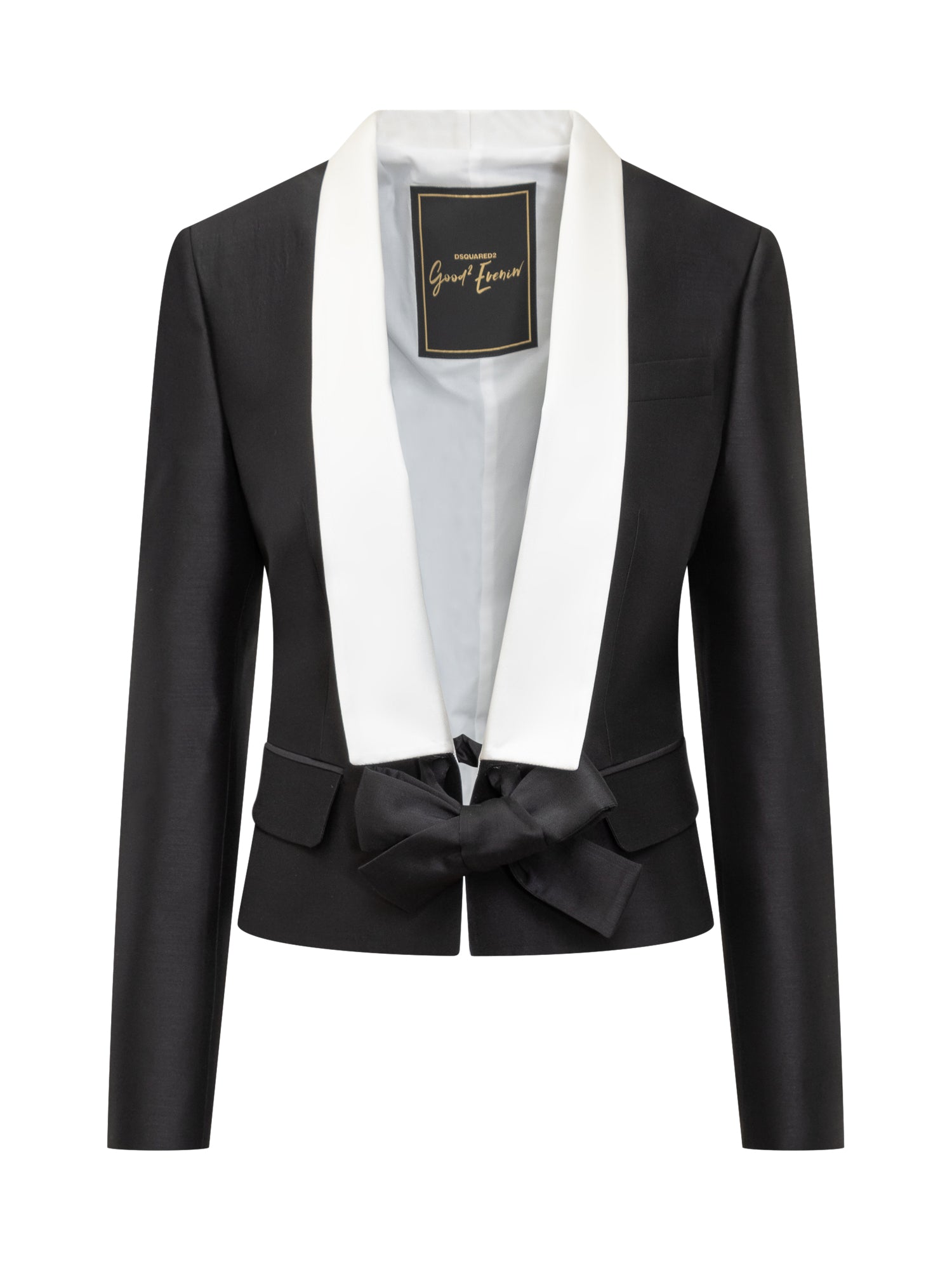Ribbon closure on the front.