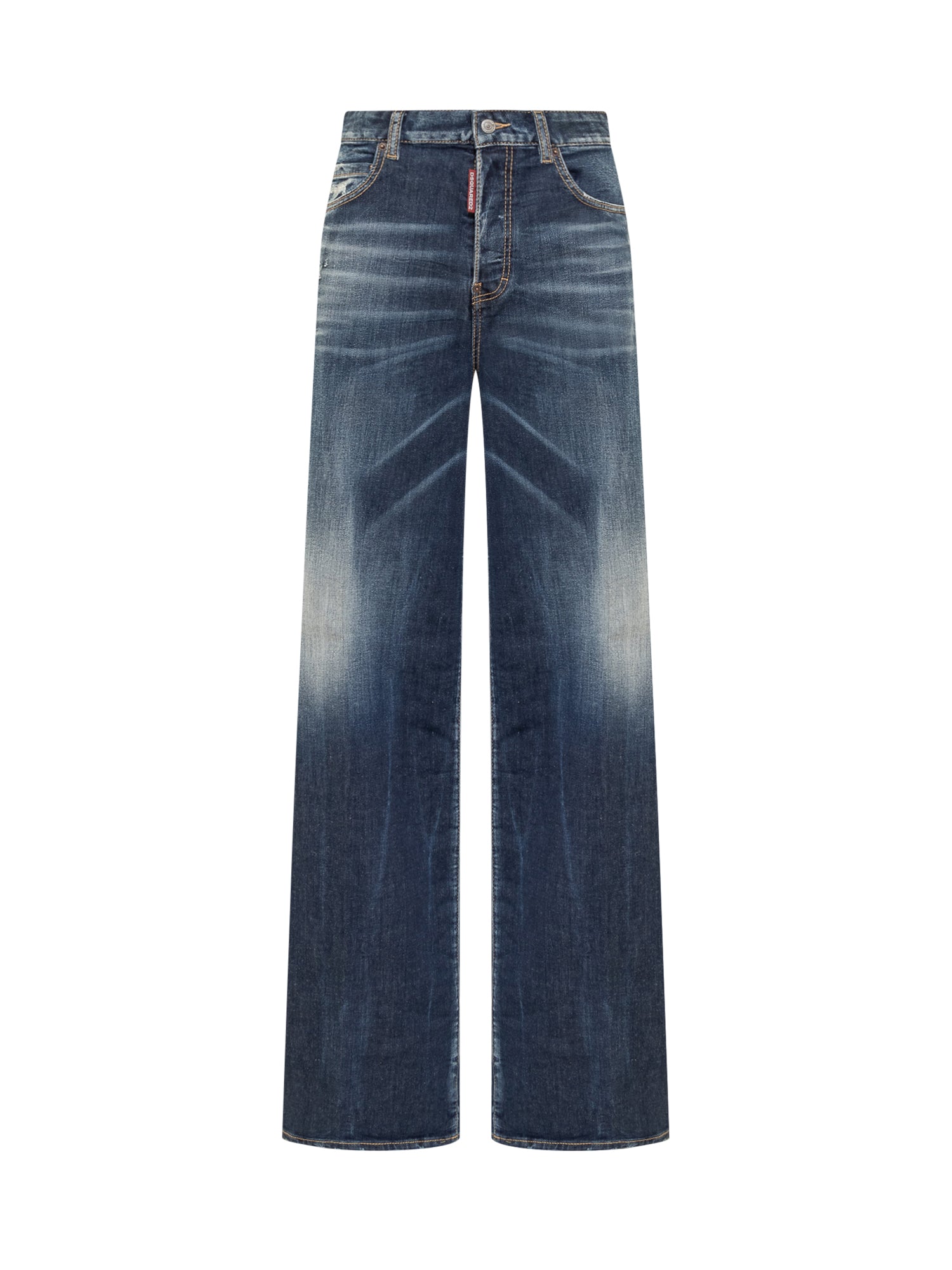 Blue jeans. Five pockets. Button closure. Wide leg. Destroyed details.Belt loops. Logo label on back.