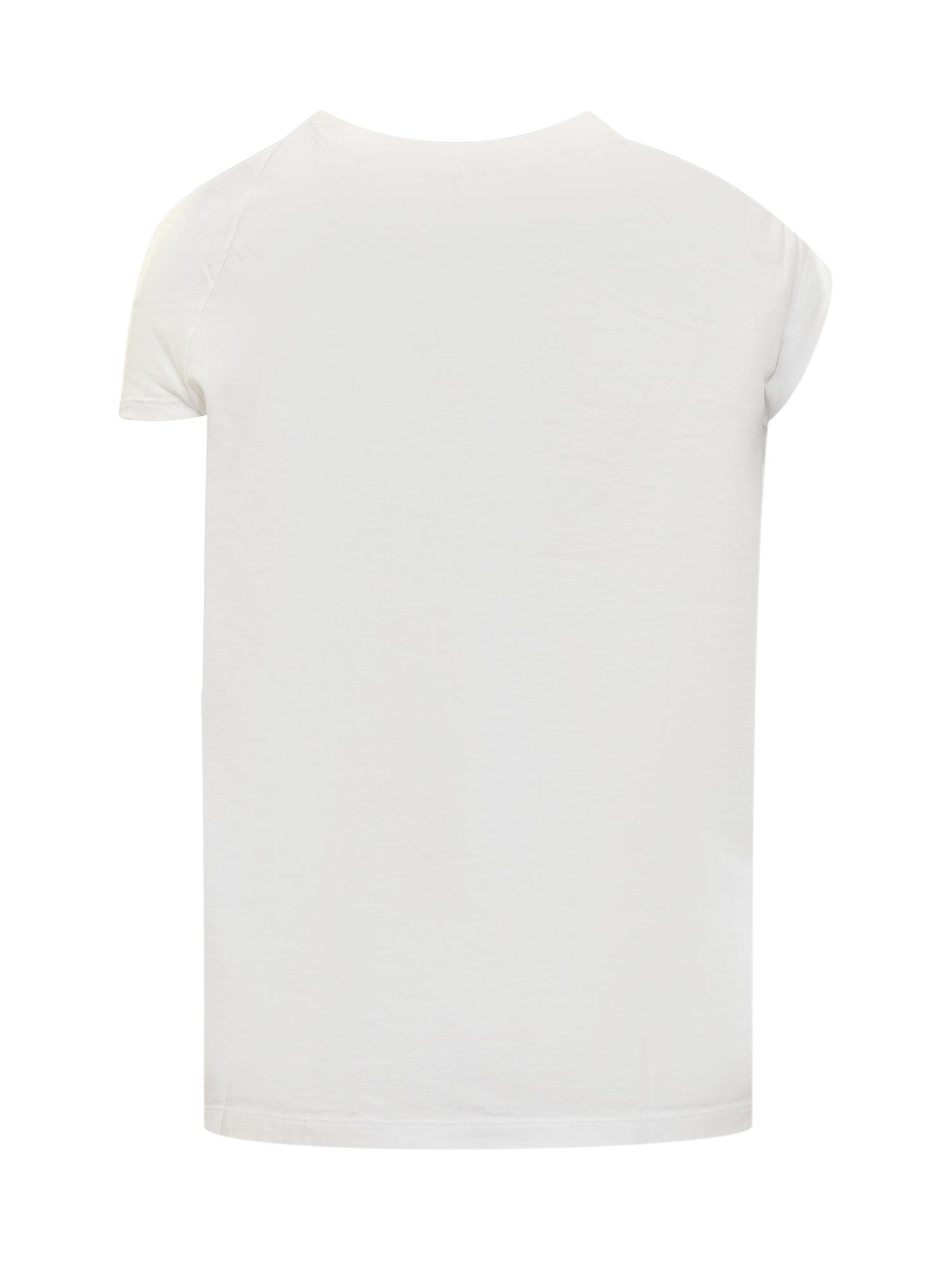 Short-sleeved cotton T-shirt. Asymmetrical neckline with knotted effect at front. Ribbed hems. Printed logo on front.