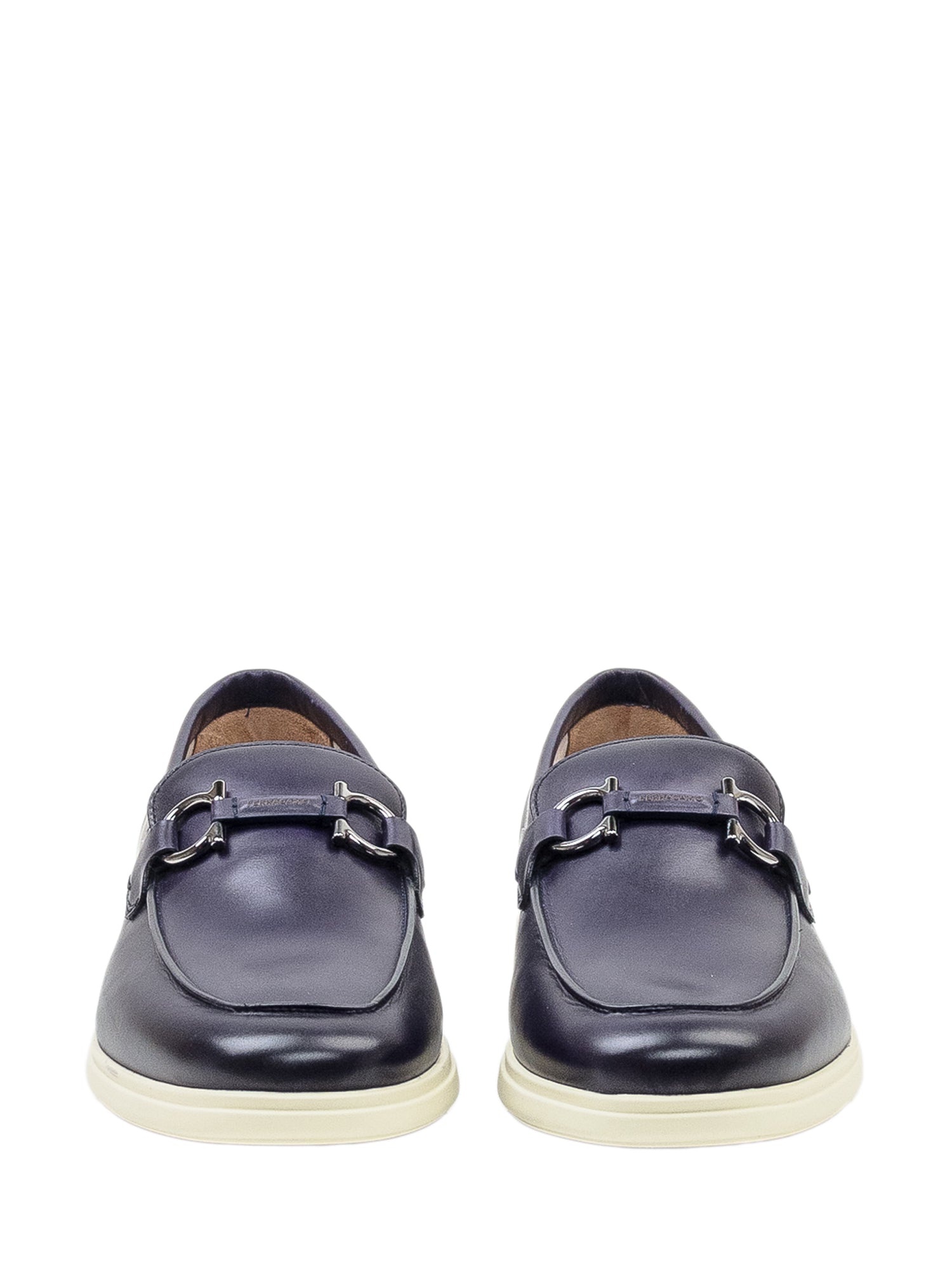 Leather loafers featuring a front metal detail and lightweight contrast sole.