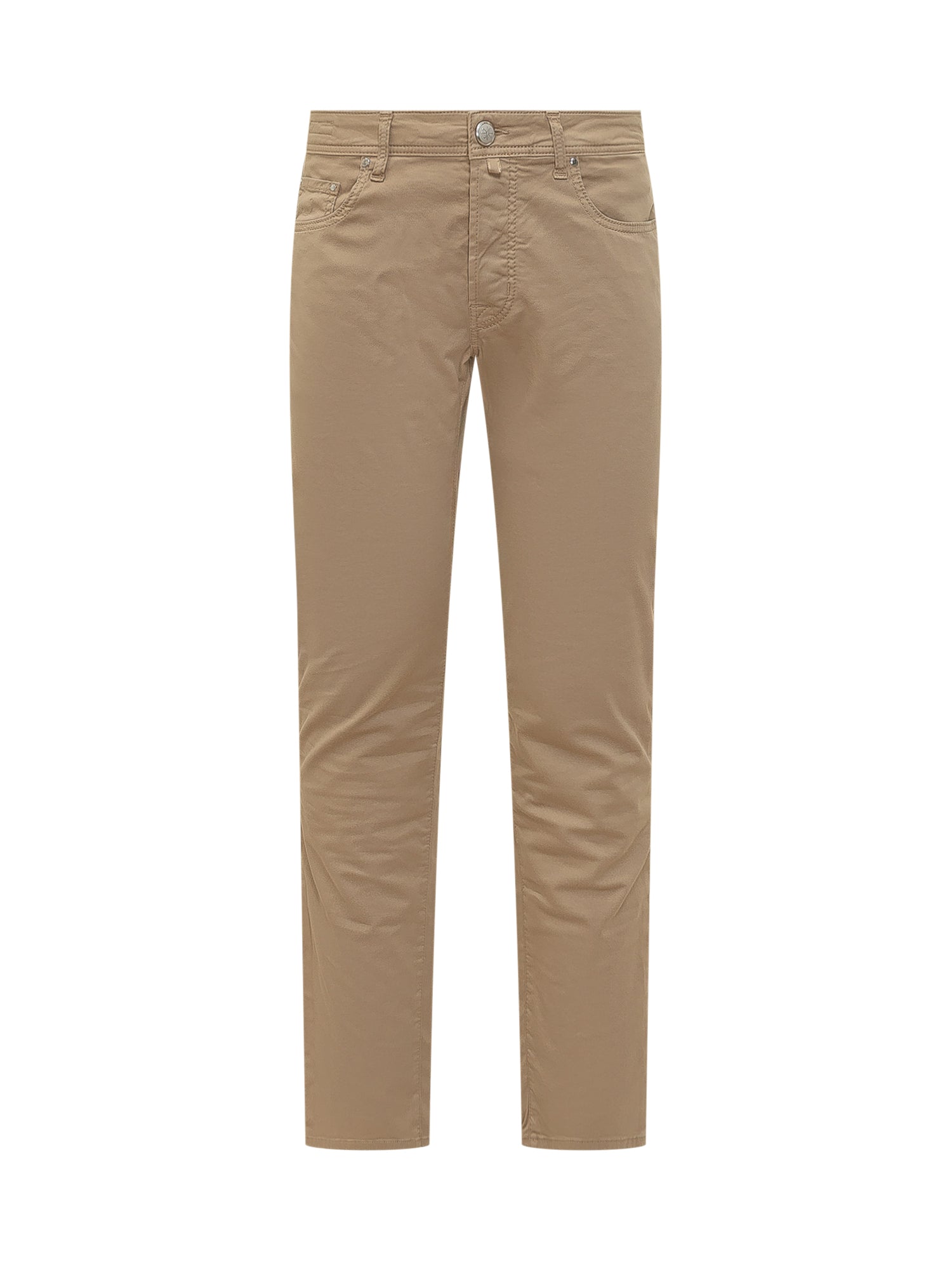 Five-pocket trousers with a slim fit and straight-leg silhouette. Crafted from compact, smooth fabric with subtle stitching and classic construction. Regular waist with belt loops. Front zip and button closure.