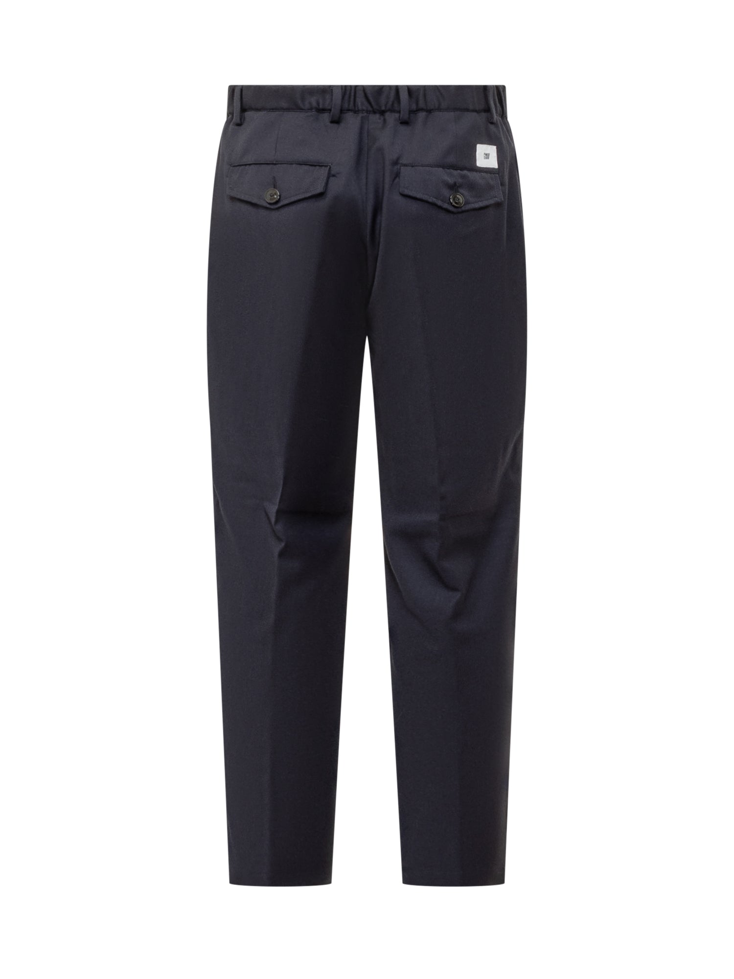 PMDS blue cotton trousers with front pleats, flap pocket and zip and button closure.